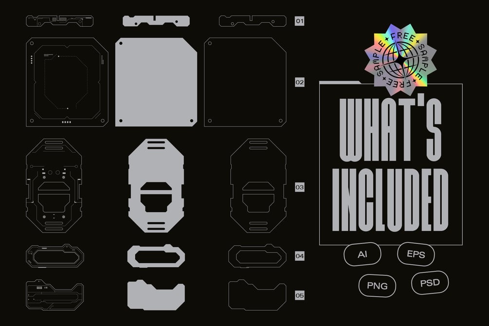 A free sample of Sci-Fi Panels vector pack. You will get 5 elements, as shown in the previews.
